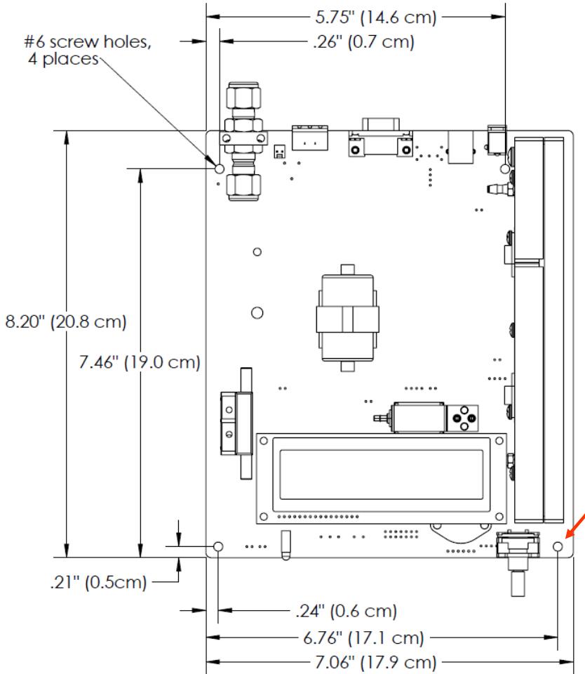 電路板有四個(gè)孔,用于將臭氧監(jiān)測(cè)儀安裝到儀器下方的支架上(圖 1)。 這些孔用于#6 機(jī)器尺寸螺釘。 如果安裝到未接地的物體上,請(qǐng)使用絕緣螺釘和墊圈來(lái)安裝儀器,否則使用不銹鋼螺釘和墊圈固定三個(gè)孔,并在選擇開(kāi)關(guān)的孔上使用塑料墊圈(見(jiàn)下文)。